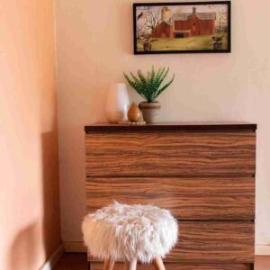 Woodsworthinterior: Nature-Inspired Wooden Dresser & Faux Fur Ottoman Combo