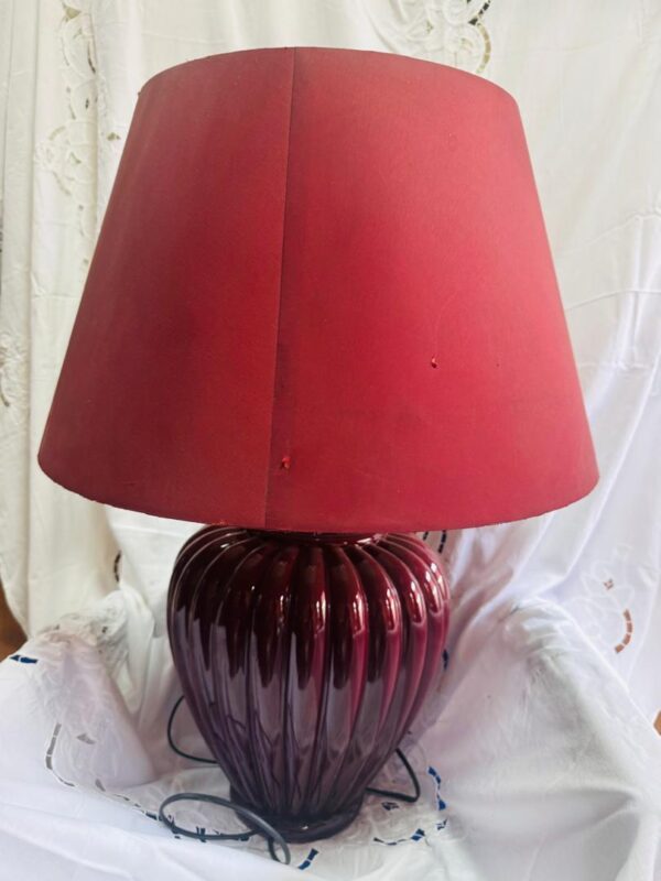 Vintage Burgundy Ceramic Table Lamp with Matching Shade