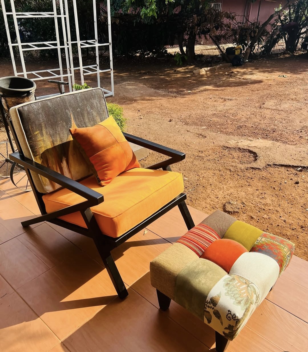 Experience premium relaxation with this exquisitely designed lounge chair and patchwork ottoman from Woodsworthinterior. Crafted with an artistic fusion of modern elegance and African-inspired aesthetics, this set is the ideal addition to your indoor or outdoor living space. Whether placed on a veranda, patio, or cozy reading corner, it exudes warmth, comfort, and a touch of Afrocentric sophistication.