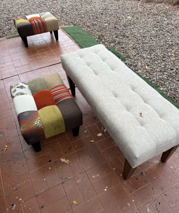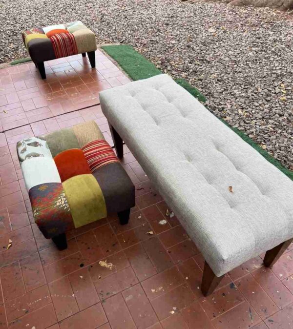 Step into comfort, color, and craftsmanship with Woodsworthinterior. Shop premium upholstered benches and Afro-patchwork ottomans exclusively on Vendorh.com.